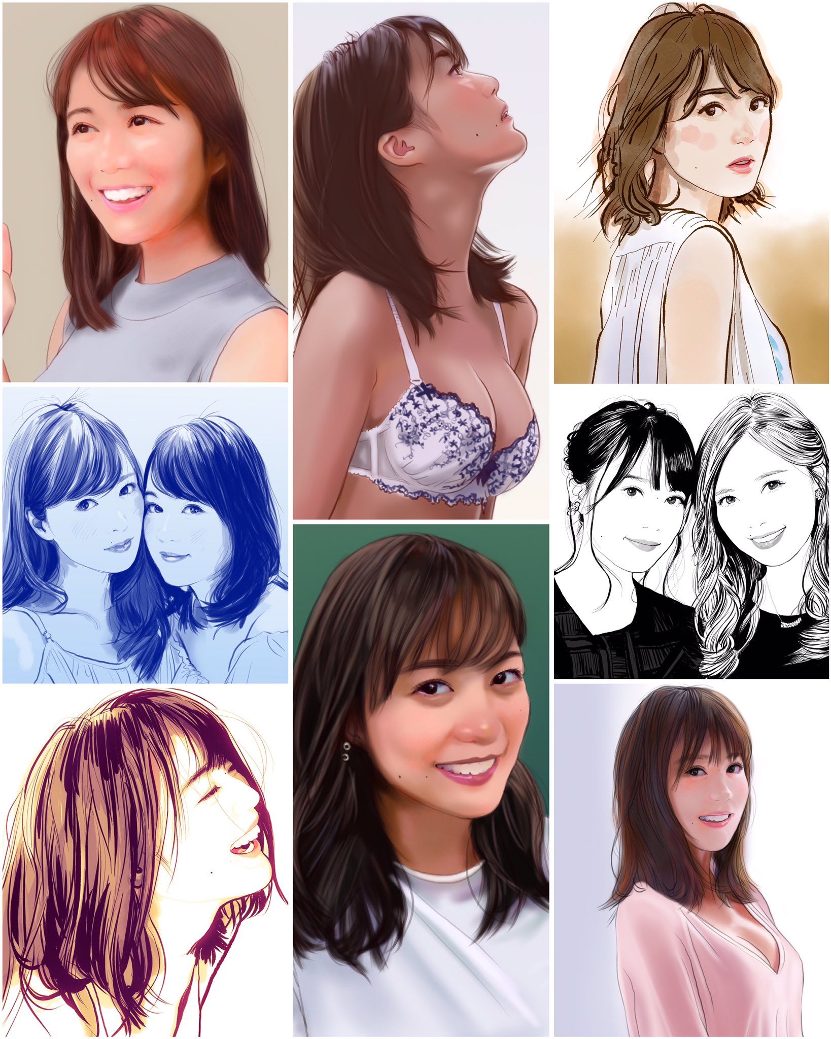 白石麻衣さんと生田絵梨花さん 似顔絵 イラスト イラストレーション アイドル モデル 乃木坂46 白石麻衣 まいやん 生田絵梨花 いくちゃん Caricature Illustration Portrait Artwork Drawing P イラスト イラストレーション 似顔絵